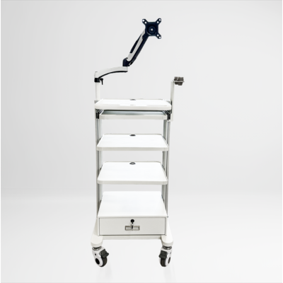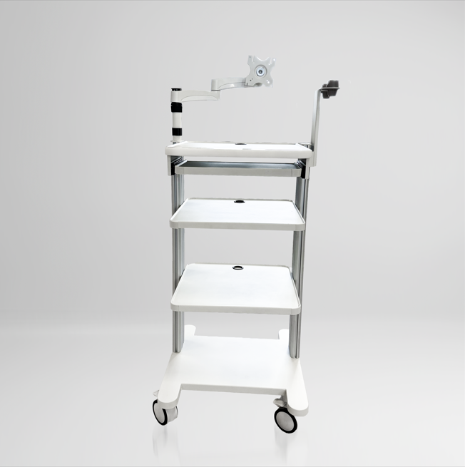- For endoscopists and ENT specialists: Multiple open shelves allow placement of a video processor, light source, and insufflator within one vertical unit.