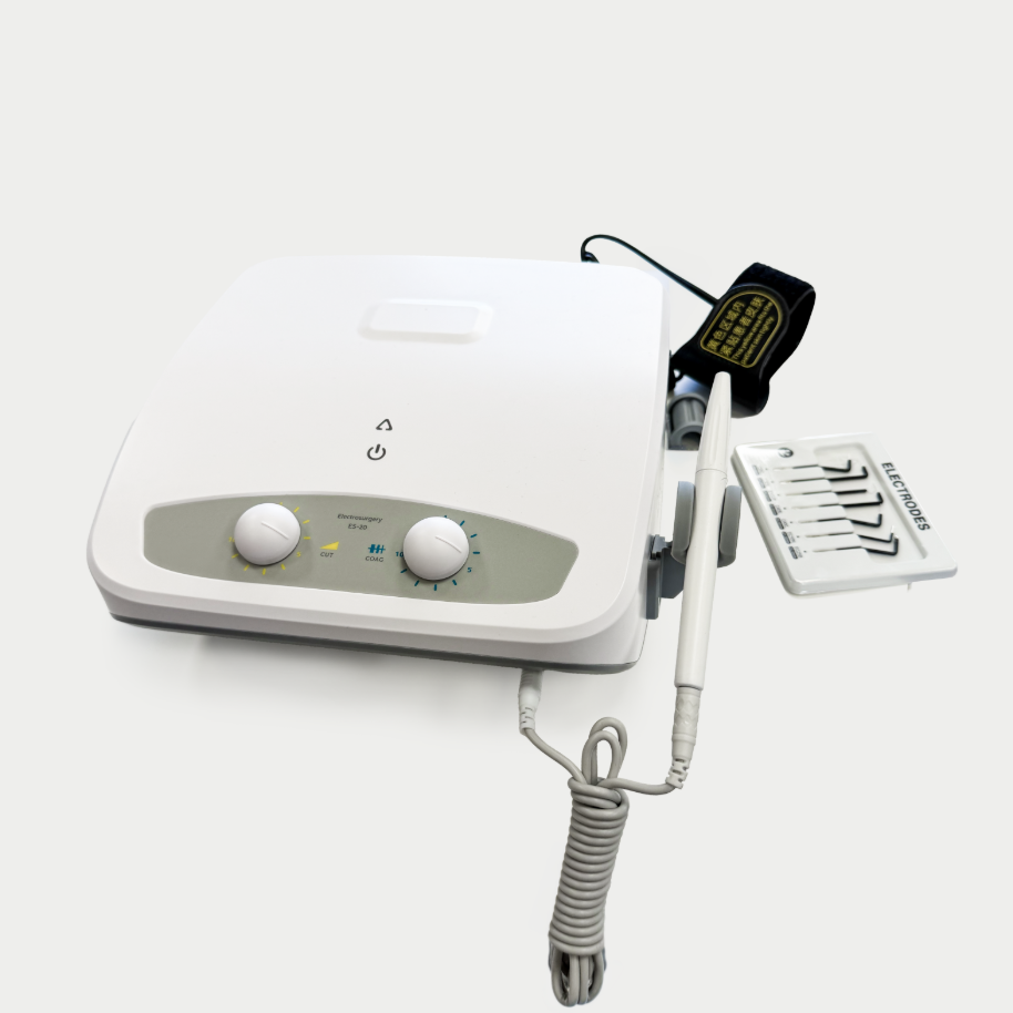 ES-20 is a powerful electrosurgical unit specifically designed for the needs of dental practice. It provides fast and extremely precise soft tissue incision with instant hemostasis. Thanks to a modern electronic design, the device ensures minimal energy loss and stable performance during complex surgical procedures.