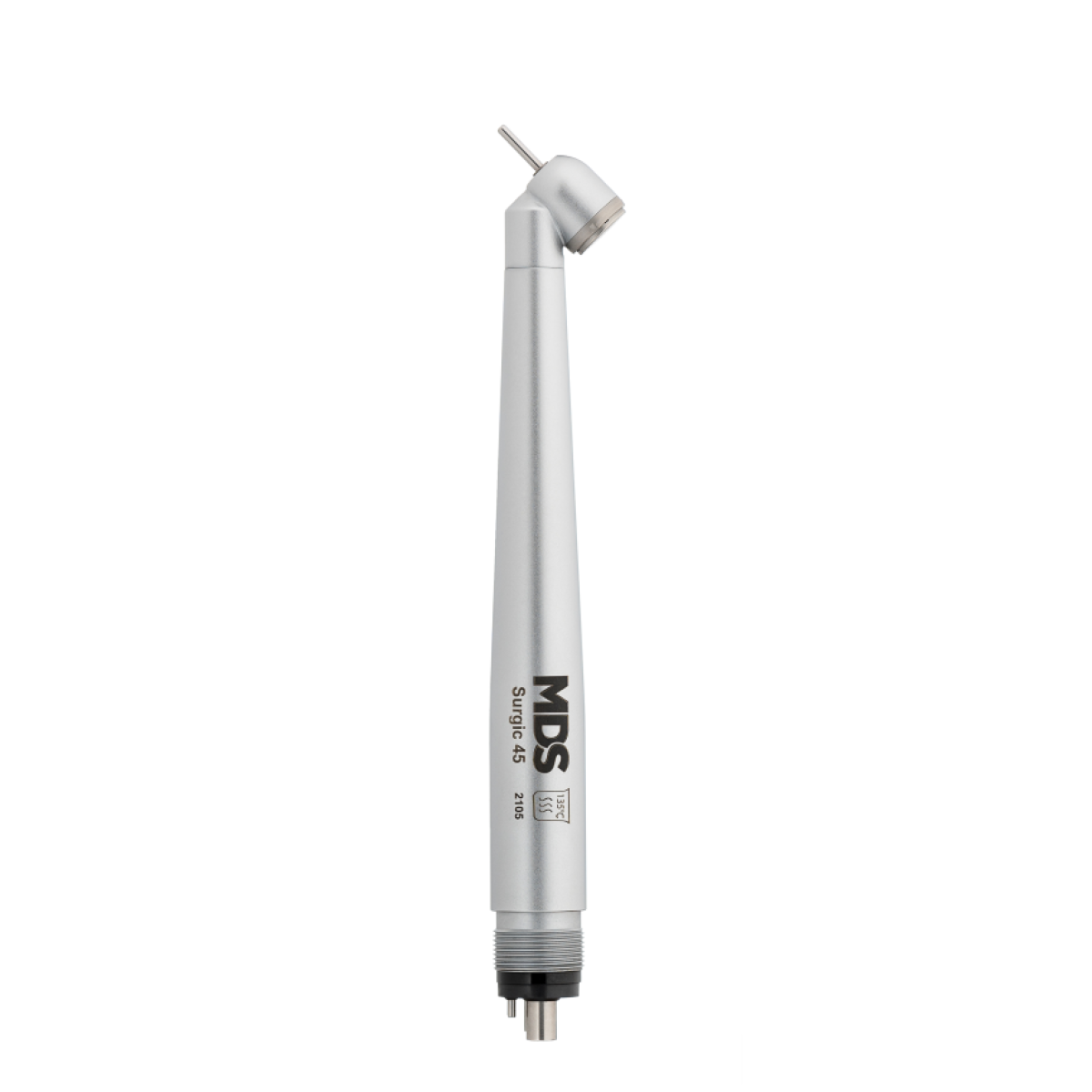 Турбінний наконечник без світла "Surgic 45" розроблений, як бюджетна пропозиція для хірургічної стоматології. Він вигідно відрізняється кутом нахилу головки, що дозволяє швидко та зручно розрізати "вісімки", високою якістю запчастин, потужністю (16 Вт) та тривалим терміном роботи. З основних характеристик наконечника "Surgic 45" можна виділити: