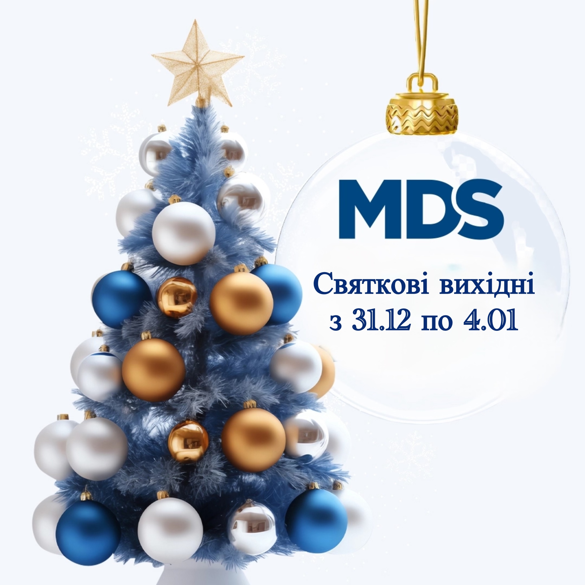 Повідомляємо, що у період з 31 грудня по 4 січня наша компанія працює у режимі святкових новорічних вихідних.