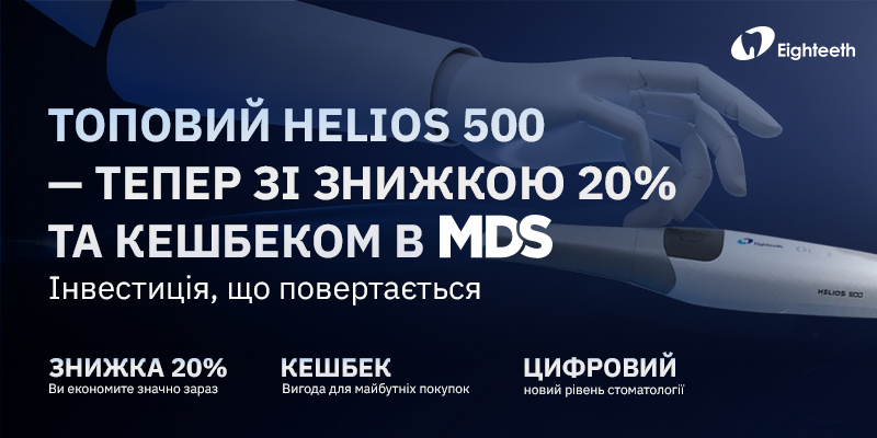 Преміальний інтраоральний сканер Helios 500, який уже завоював популярність серед українських клінік завдяки точності, стабільності та простому робочому процесу — тепер можна придбати зі знижкою 20% та отримати кешбек від MDS.