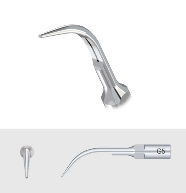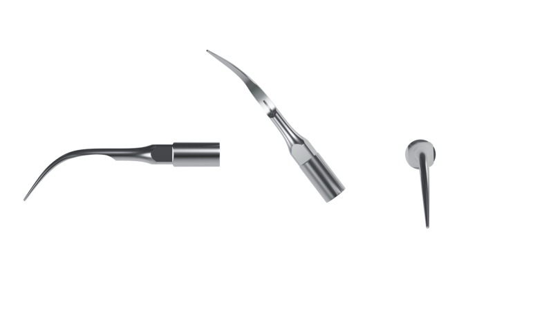 Используется для удаления надясенного камня, пришеечных зубных отложений, а также для чистки шейки зуба от отложений твердой консистенции.