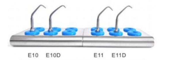- E11D: Имеет изогнутую форму и короткую рабочую часть (длина 2,2 мм) покрытую алмазным напылением (40 мкм). Предназначена для выравнивания поверхности корневого канала при его ретроградной (хирургической) обработке и для эффективной полировки верхушки корня зуба.
