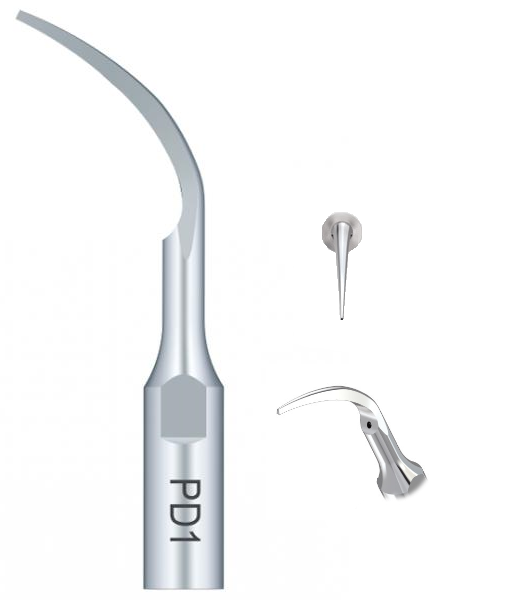 Насадка слегка изогнута, имеет узкую и острую рабочую часть.