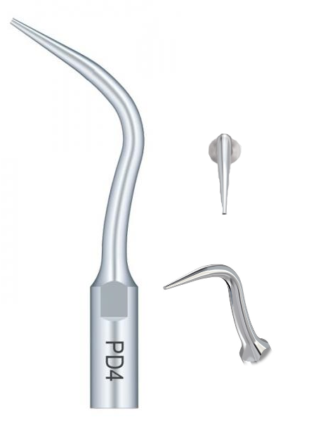 Суженная форма насадки легко проникает в неглубокие зубоясенные карманы пациента, эффективно их очищает и промывает, удаляет камень и другие отложения.
