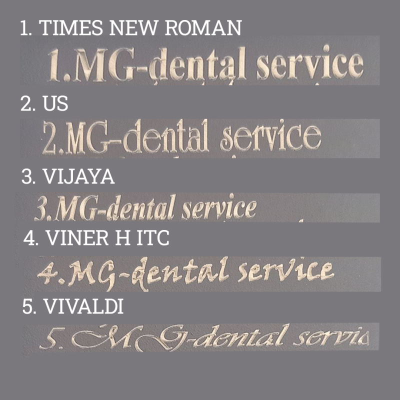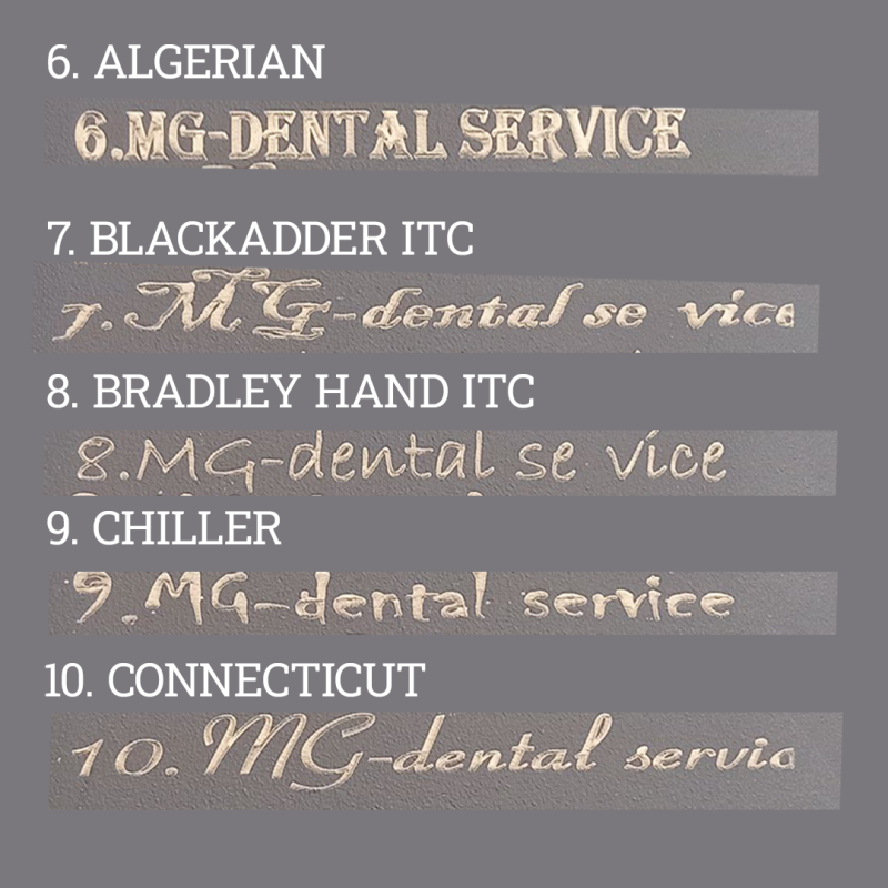 При заказе менеджер свяжется с Вами для выбора шрифта гравировки:
