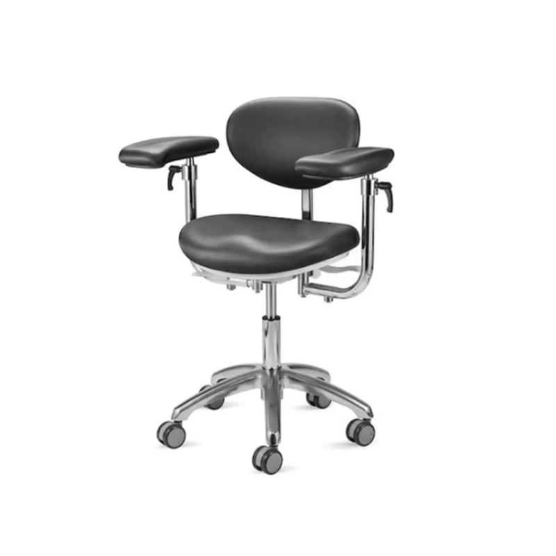 Стул стоматологический для микроскопа CASA оснащён регулируемыми широкими подлокотниками, которые обеспечивают необходимую опору и комфорт. Благодаря возможности перемещения вперёд-назад и повороту наружу, подлокотники адаптируются под индивидуальные потребности пользователя.