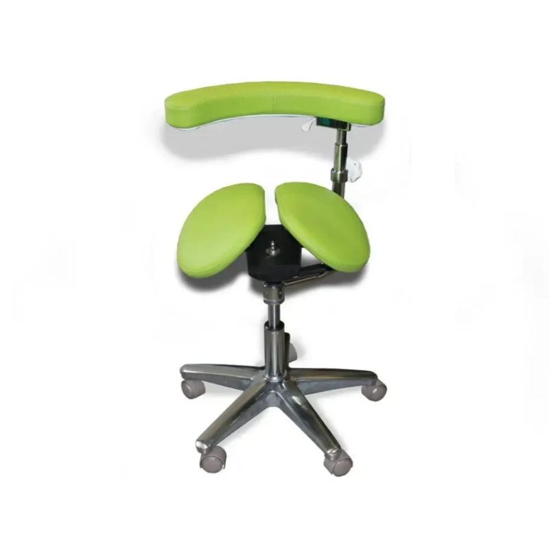 Сидение стула состоит из 2 половинок. Благодаря чему нагрузка равномерно распределяется на кости таза, снимая нагрузку с ног.