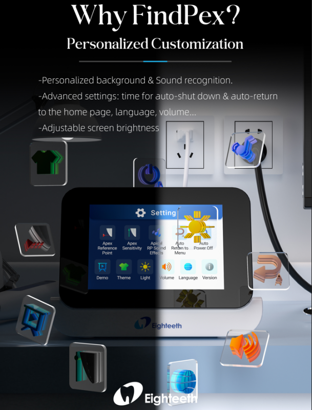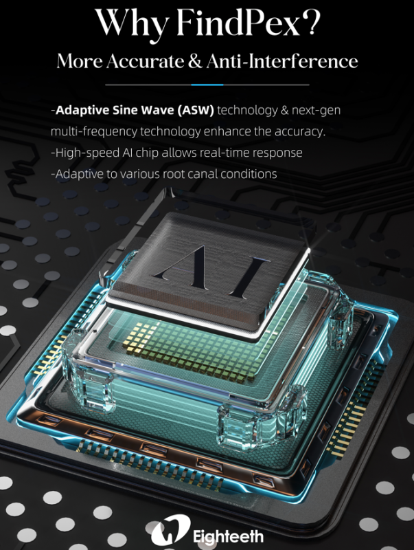 Технология адаптивной синусоидальной волны (ASW) — это эксклюзивная инновация компании Eighteeth, которая делает процесс измерения свободным от помех и стабильным в сложных условиях корневых каналов, чтобы избежать скачков значений.
