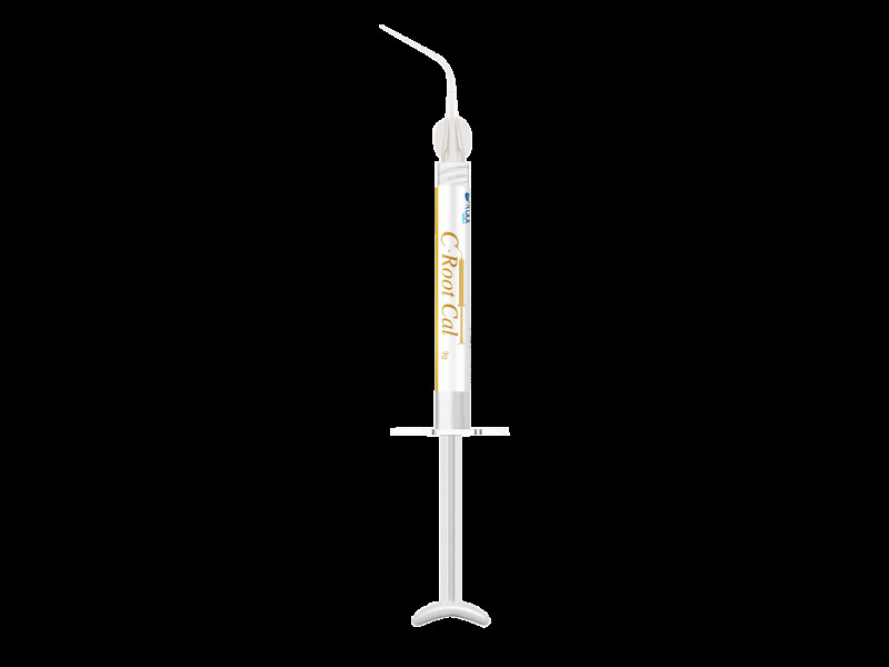 C-Root Cal – это паста гидроксида кальция для лечения и временной герметизации корневых каналов во время стоматологического лечения. Создает повышенную щелочную реакцию (до рН 12), что проявляет мощное антибактериальное действие, стимулирует регенерационные процессы в тканях зуба и стабилизирует жизнеспособность зуба. Также может служить защитным барьером в промежутках между оперативными вмешательствами. Отличается легкостью внесения, уменьшением послеоперационных осложнений, не окрашивает и не раздражает дентин. Легко удаляется из каналов как файлами, так и ультразвуком. Полное отверждение наступает через 14 дней.