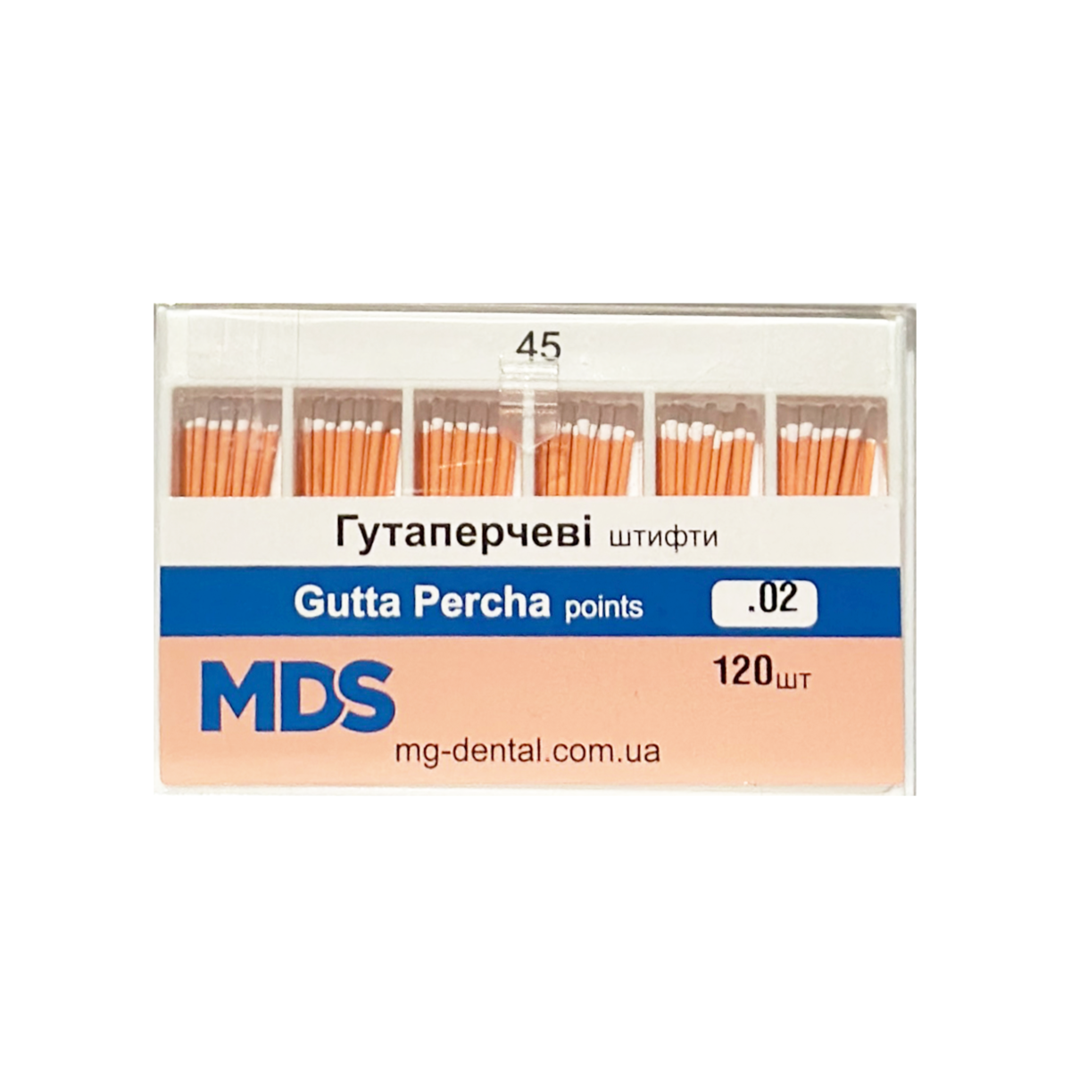 Штифты гуттаперчевые, конус 02, размер 45, MDS