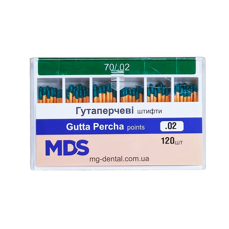 Штифты гуттаперчевые, конус 02, размер 70, MDS
