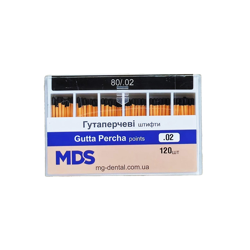 Штифты гуттаперчевые, конус 02, размер 80, MDS