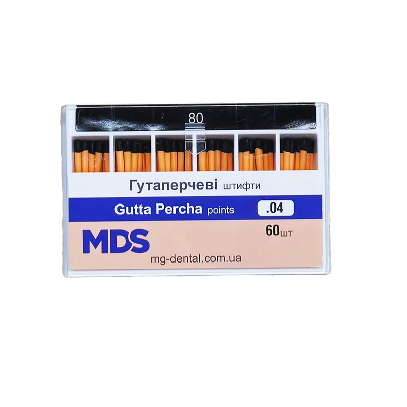 Штифты гуттаперчевые, конус 04, размер 80, MDS