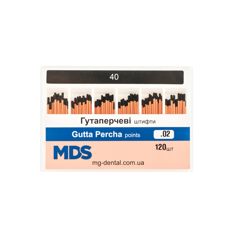 Штифты гуттаперчевые, конус 02, размер 40, MDS