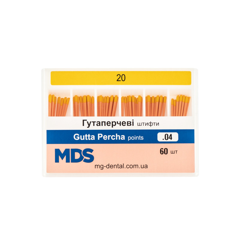 Штифты гуттаперчевые, конус 04, размер 20, MDS