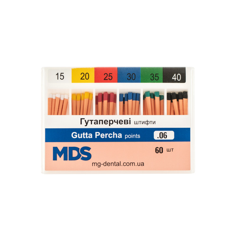 Штифты гуттаперчевые, конус 06, размер 15-40, MDS