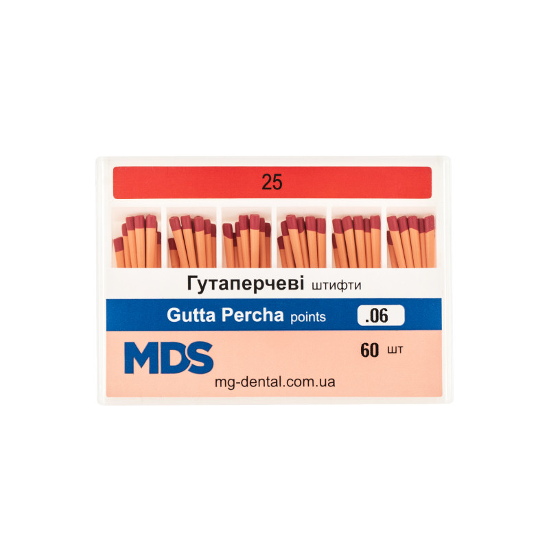 Штифты гуттаперчевые, конус 06, размер 25, MDS