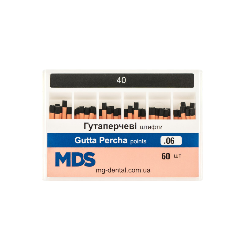 Штифты гуттаперчевые, конус 06, размер 40, MDS