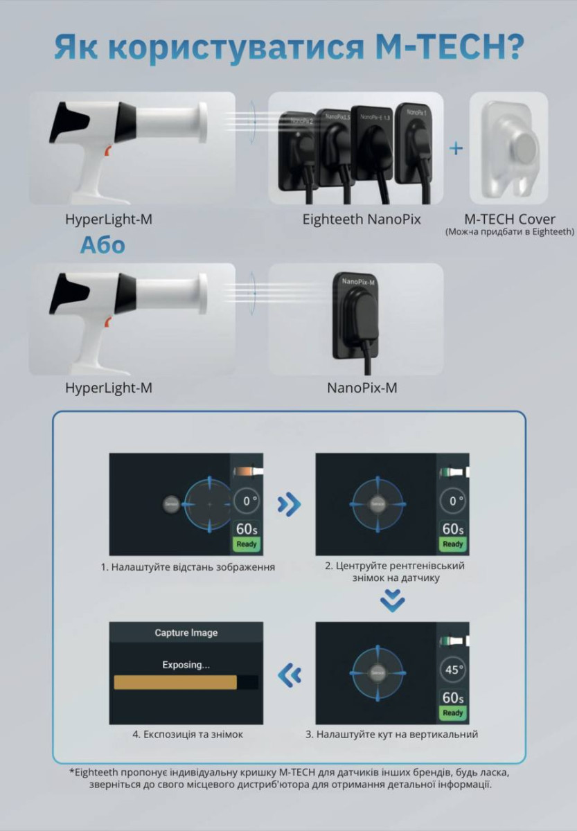 Технология M-TECH работает в паре с датчиками NanoPix и чехлом M-TECH, что обеспечивает высокую точность, стабильность и комфорт стоматолога.
